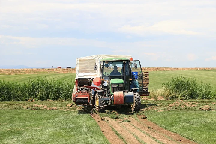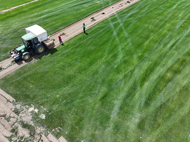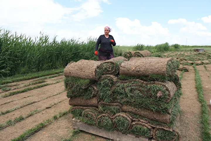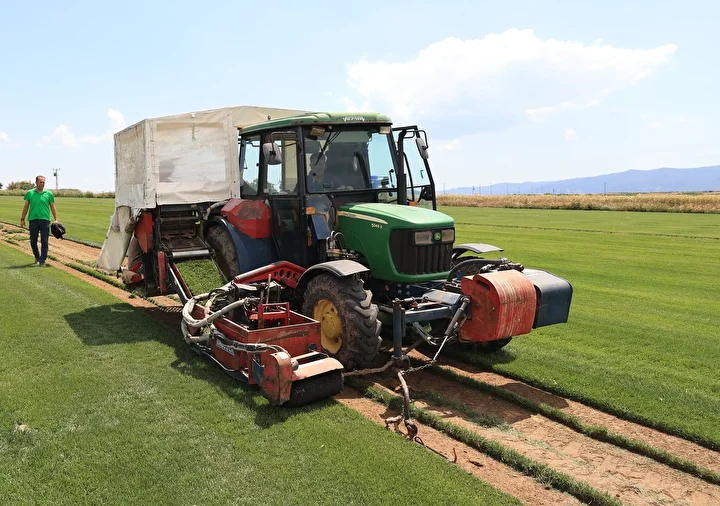 "Hasat sonrasında burada ürettiğimiz çimi yurt içi ve yurt dışından talep eden müşterilerimize veriyoruz. Rulo çim, park ve bahçeler, siteler, futbol ve golf sahaları, yol, şev, geniş ve yeşil alan çalışmaları gibi peyzajla ilgili olan alanlarda kullanılıyor.