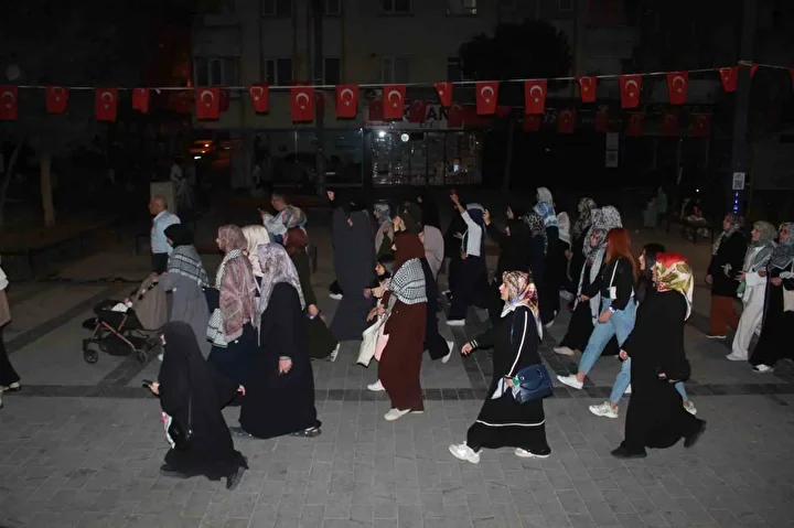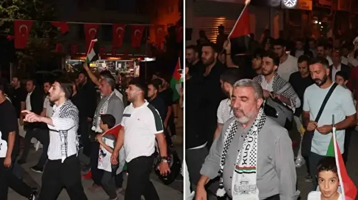 Gece yarısı 15 Temmuz Demokrasi Meydanı’nda bir araya gelen kalabalık, STK temsilcilerinin de katılımıyla Güres Caddesi boyunca yürüyüş yaptı. Ellerinde Filistin bayrakları taşıyan vatandaşlar, İsrail aleyhine sloganlar atarak Filistin halkına destek mesajları verdi.