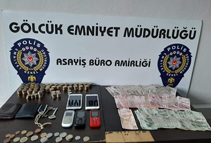 H.K.'nın mağazadan çaldığı bin 395 TL para, 5 cep telefonu, 2 adet cüzdan, 3 adet anahtar, 1 adet laptop çantası ele geçirildi.