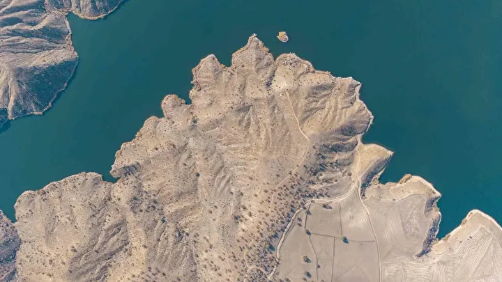 Kapulukaya Barajı’nda Kızılırmak’ın oluşturduğu kıvrımlı su hatları ve bozkır dokusunun birleştiği eşsiz manzara havadan görüntülendi. Bölge kartpostallık görüntüleriyle dikkat çekiyor.