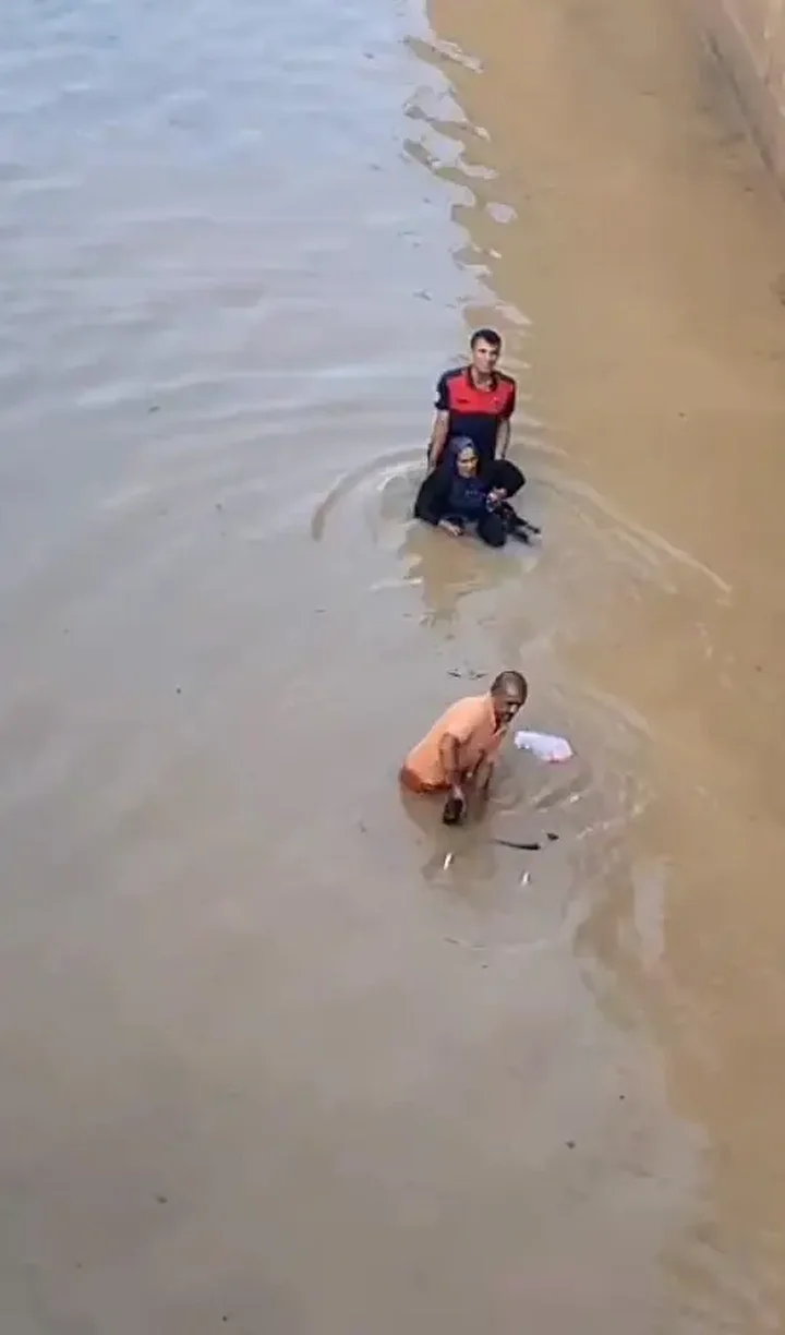 Yaşlı kadın, boğulmak üzereyken itfaiye ekipleri tarafından kurtarıldı. Kadının kurtarıldığı anlarsa kameraya yansıdı.