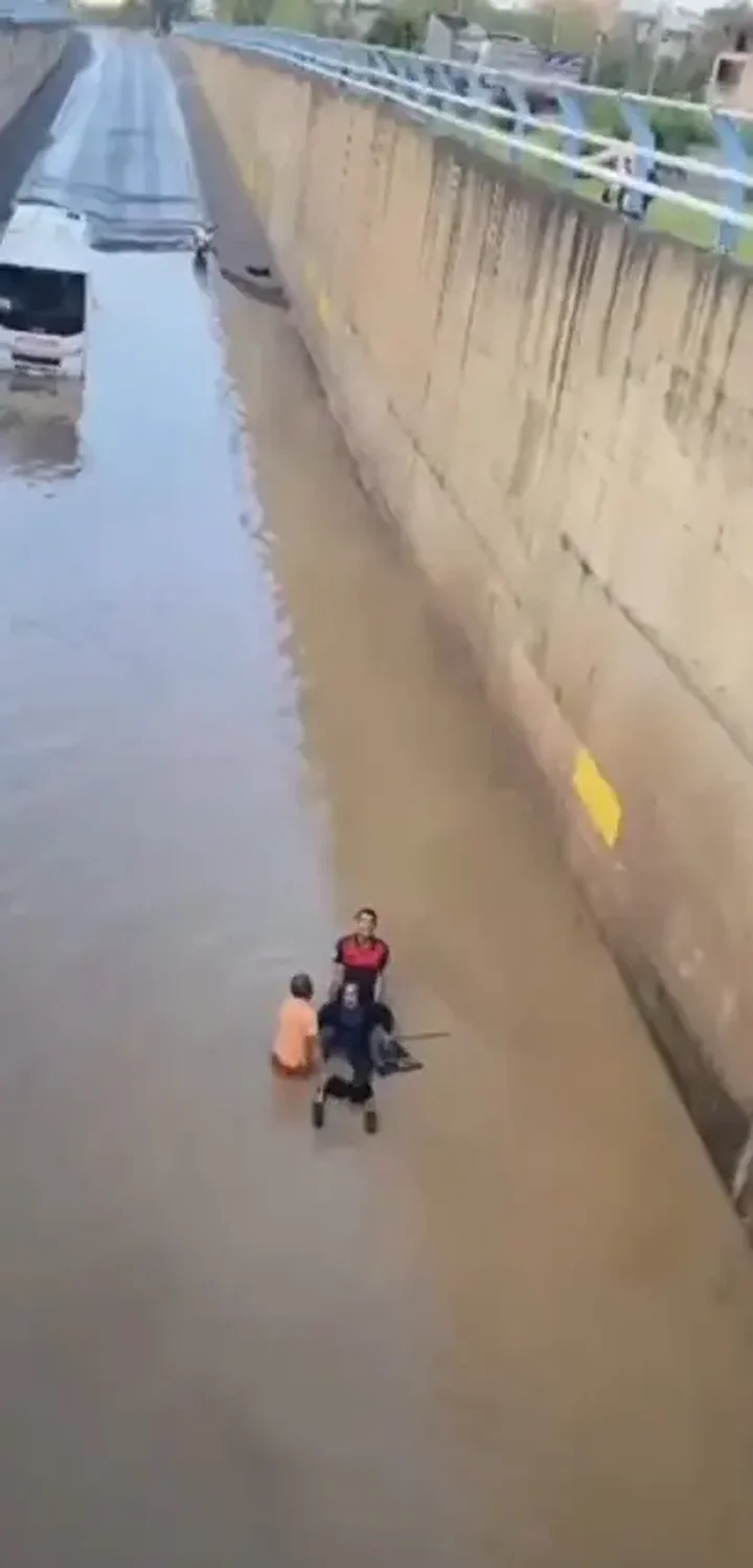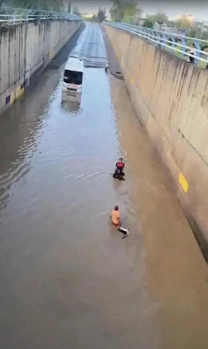 Hatay’da yağışın etkisiyle suyla dolan alt geçitte mahsur kalarak boğulmak üzere olan engelli kadını itfaiye kurtardı.