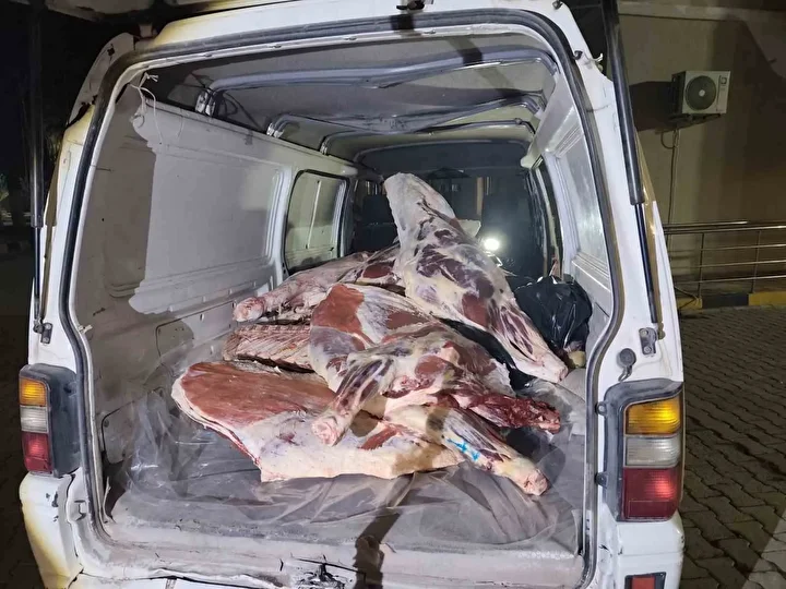 Hatay’da jandarma ekipleri tarafından durdurulan araçta menşei belirsiz 1 ton kırmızı et ele geçirildi.