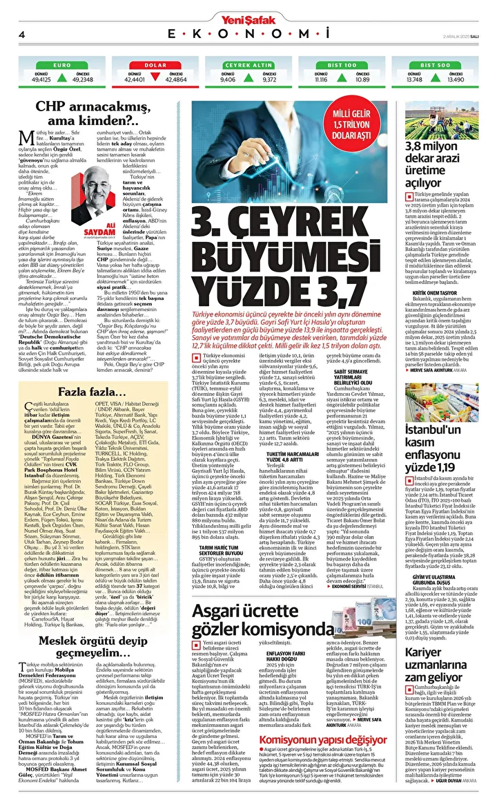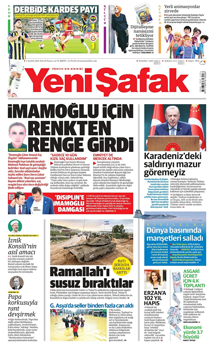 Yeni Şafak Gazetesi'nin 02 Aralık 2025 tarihli sayısına hoş geldiniz. Gündem, spor ve ekonomi sayfalarımızda bugünün öne çıkan haberlerini keşfedin.