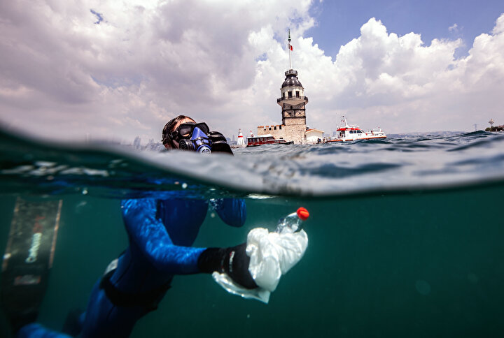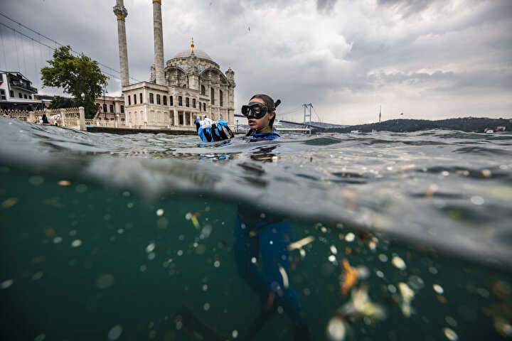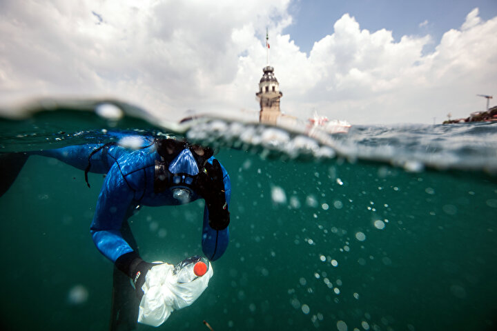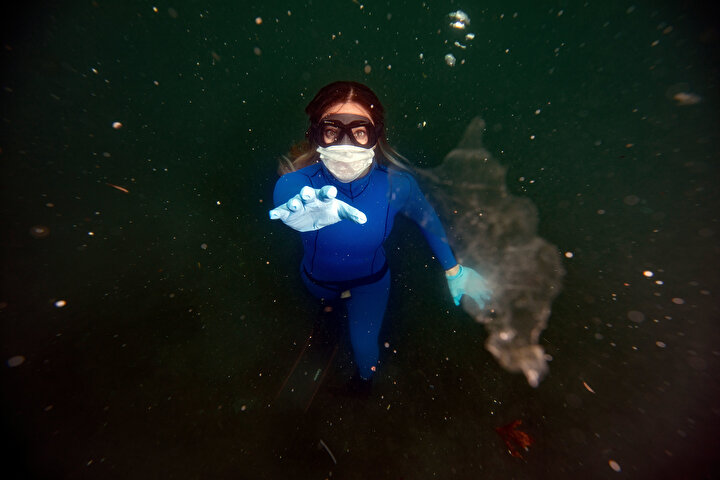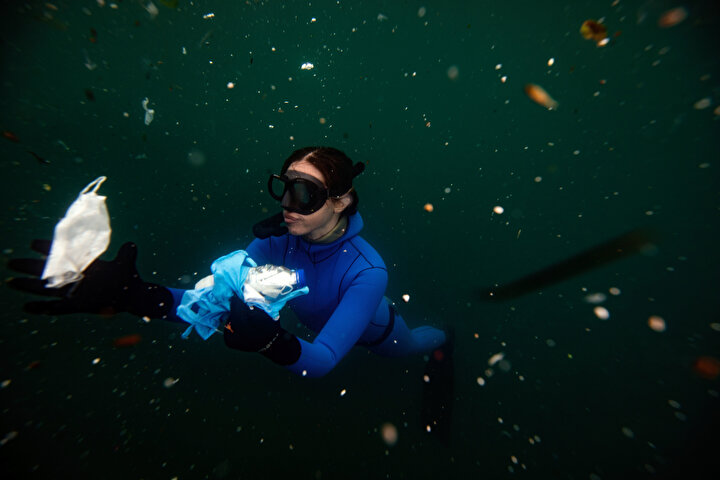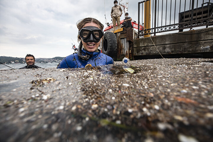 "Resmen plastik atık dalışı yaptım diyebilirim İstanbul Boğazı'nda. Bizim yüzümüzden balıklar burada nasıl barınabiliyor ve biz o deniz ürünlerini nasıl güvenip yiyeceğiz onu da bilmiyorum ama gördüğüm şey, ben bile suyun içinde yüzmekte zorlandım. Her yerim atık dolu. Suyun altından o kadar çok eldiven, maske, şişe, dezenfektan, poşet ne ararsanız çıkartmaya çalıştık ki ama bizim gücümüzle olacak bir şey değil. Ülkenin ve bence dünyanın en güzel yerlerinden birisi, plastik atıklarla boğulmak üzere."
