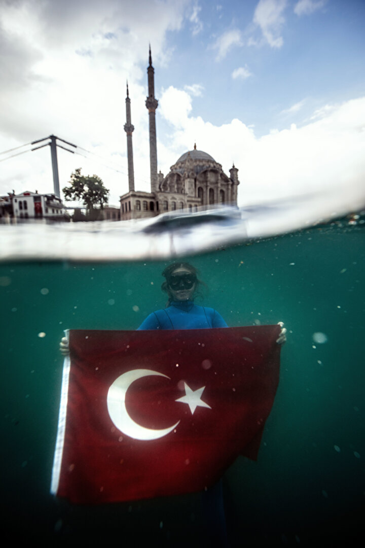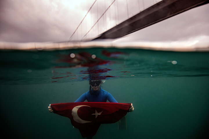 Ercümen, daha sonra Kıyı Emniyeti Genel Müdürlüğü sualtı ekibinin denetiminde İstanbul Boğazı'nda gözlem dalışı gerçekleştirdi. Ercümen, dalışın bir bölümünde gaz maskesi ile objektife poz vererek, suyun altından hava kirliliğine de dikkati çekti.