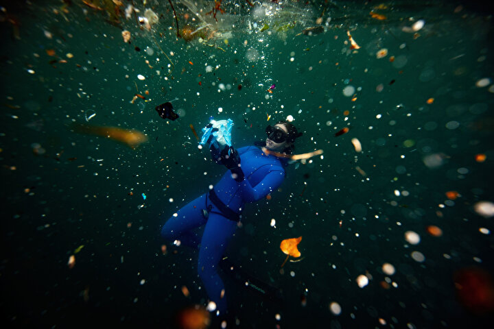 "Bu noktada benim yapacağım dalışlarla denizleri tek başıma temizlemem mümkün değil. Hatta bizim gördüğümüz atıkların yüzde 15'i sadece deniz yüzeyinde, yüzde 85'i orta suda ve derin suda. Bunları dipten almamız da mümkün değil. Bizim yapmaya çalıştığımız görebildiklerimize müdahale edebilmek ama her şeyden önce suyun üzerine çıkararak farkındalık oluşturmak. Çünkü bu sadece gezegenimizi değil her birimizin soluduğu havayı bile etkiliyor."