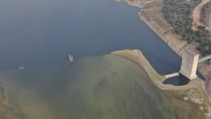 Yine aynı şekilde barajın Gaziosmanpaşa tarafında bulunan tahliye kapakları de su seviyesinden metrelerce yukarısında kaldı. Havadan görüntülenen barajdaki su seviyesindeki büyük düşüş kıyılardaki eski su izlerinden de belli oldu.