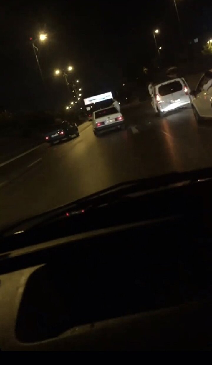Semtteki eğlencelerin ardından araçlarına binen grup konvoy halinde trafiğe çıktı. Bir süre sonra yolu trafiğe kapatan gruptaki gençler, araçlarından inerek yol ortasında askere gidecek arkadaşlarını havaya fırlattı. Yollarda dörtlü sinyalleri yakarak şeritlere dağılan grup, trafiği yavaşlatarak hem kendi hem de vatandaşların canını tehlikeye attı. Araçlarla yolları trafiğe kapatan magandalar, patinaj çekerek ortalığı dumana boğarken içlerinden biri de tabancayla havaya defalarca ateş açtı. Trafikte yol kesip drift de yapan magandalar, megakentin adeta altını üstüne getirdi.