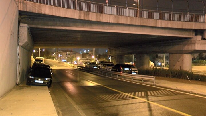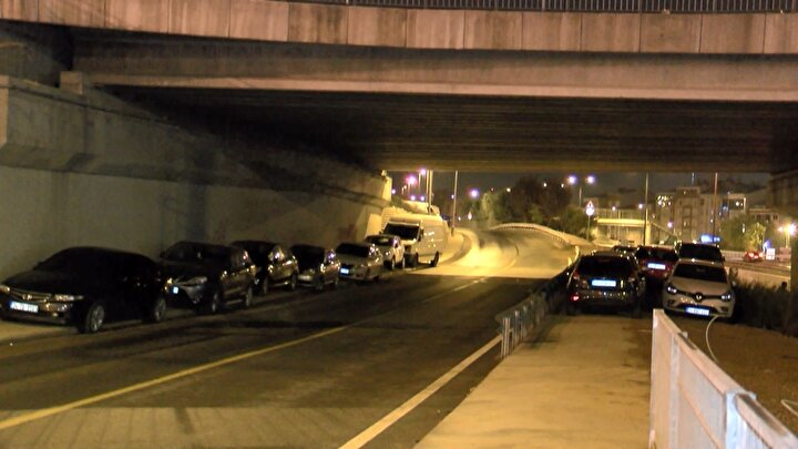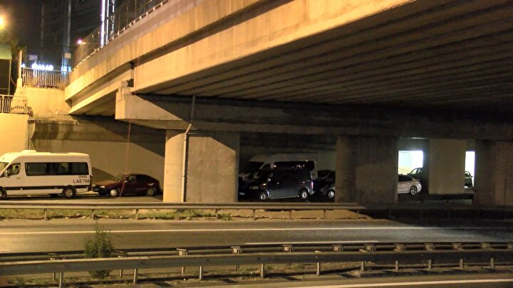 Şişli'de dolu yağışının zararından korumak bazı vatandaşlar minibüslerini köprünün altına park etti.