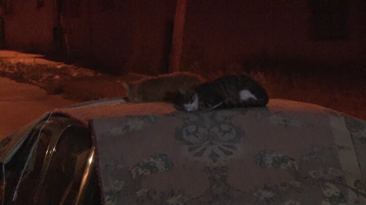Araçların üzerine serilen yumuşak halı ve battaniyelerin üzerinde yatan kediler gülümseten görüntüler oluşturdu.