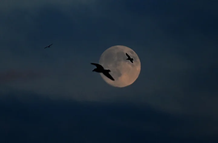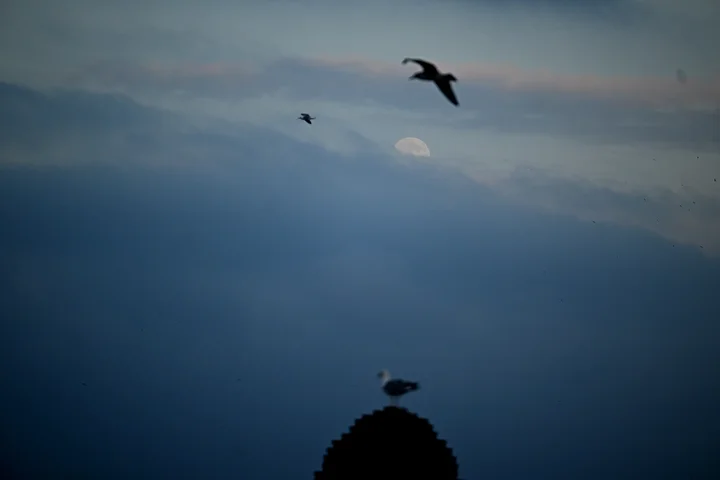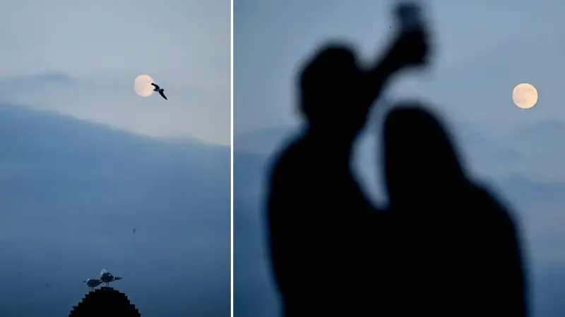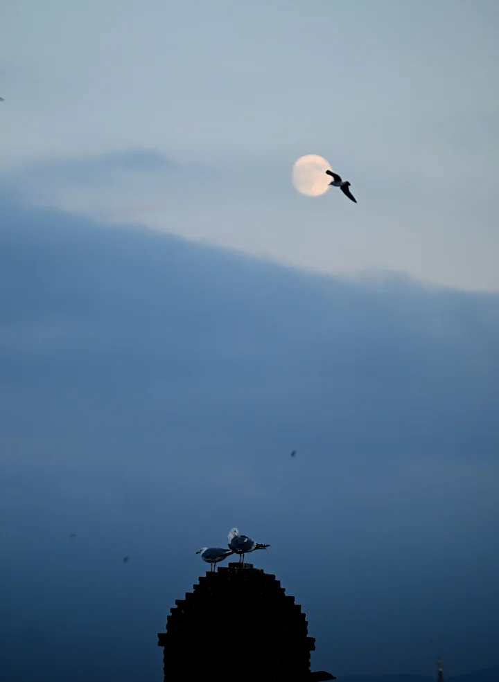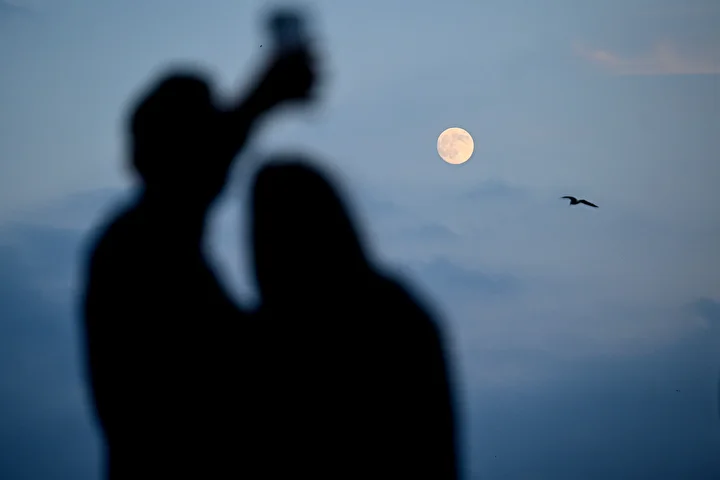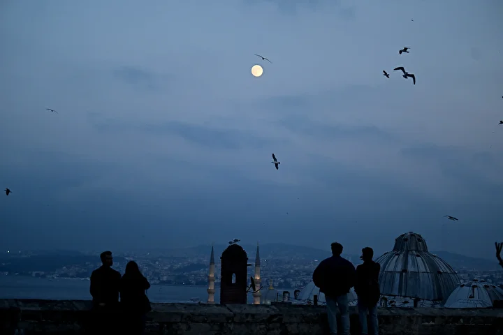 İstanbul'da akşam saatlerinde beliren dolunay, güzel görüntü oluşturdu.