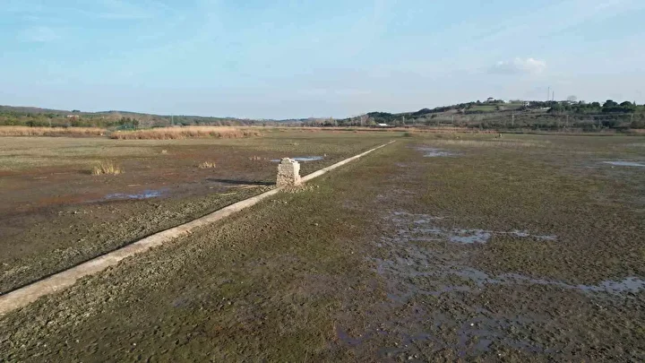 İstanbul’un önemli su kaynaklarından biri olan Terkos Gölü’nde yaşanan kuraklık nedeniyle su seviyesi ciddi oranda düştü. Suyun çekilmesiyle birlikte yıllardır göl altında kalan tarihi su kanalları ve iskeleler gün yüzüne çıktı. Göl üzerinde bulunması gereken tekneler ise karaya oturdu. Tarihi su kanalları havadan görüntülendi.