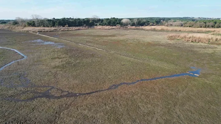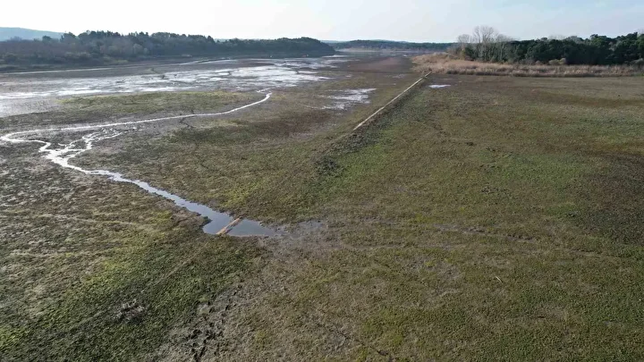 İstanbul’un su kaynaklarında doluluk oranının yüzde 20 seviyelerine kadar gerilerken Terkos Gölü’nde daralan su alanı, gün yüzüne çıkan tarihi yapılar ve kıyıya oturmuş tekneler dronla havadan görüntülendi.