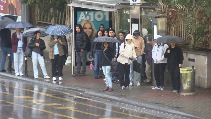 Yağış nedeniyle otobüs duraklarındaki oluşan yoğunluk dikkat çekti.