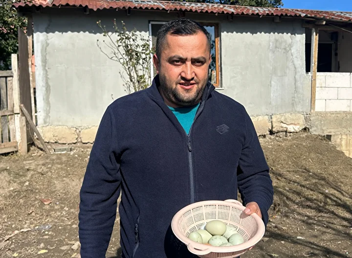 Köye damat olarak geldiğini belirten Kas, "Köy hayatını, doğa hayatını çocukluktan beri seviyorum, babadan gelen bir alışkanlık vardı, onu devam ettiriyorum. Yiyeceğimizi karşılamak amacıyla tavuk besliyoruz. Fazla olduğunda komşularımıza ve isteyenlere satıyoruz. Mavi ve normal yumurtalarımız oluyor. Mavi yumurtalarımızın besin değeri yüksek. Sabah kalkıyorum, ilk işim tavukları çıkarıp yemlemek, temizliklerini yapmak, sularını vermek ve yumurtaları toplamak oluyor. Burada hayat sakin, şehir yaşamından uzakta. Tamamen köy gibi. Şehirdeki stres, ses burada yok. Seramızda sebze yetiştiriyoruz. Yazın domates, biber, fasulye ektik. Şimdi kışlık sebzelerimizi ektik." diye konuştu.