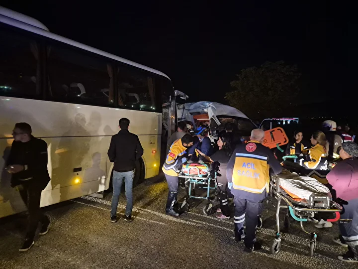 Kazada ilk belirlemelere göre, otobüs ve minibüsteki 2'si ağır 13 kişi yaralandı.