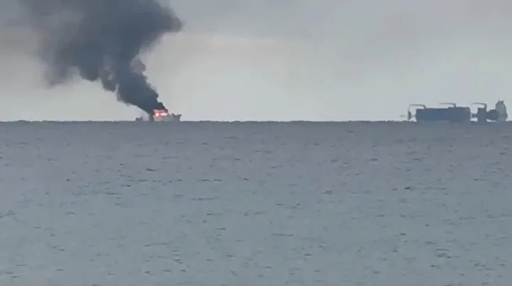 Antalya’nın Kaş ilçesi Kalkan açıklarında yanmaya başlayan ve Sahil Güvenlik ekiplerinin hızlı müdahalesiyle kaptanının kurtarıldığı teknenin yanma anları dron ile görüntülendi.