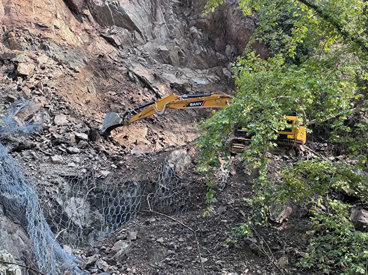 Heyelan nedeniyle demir yolu hattı seferlere kapatıldı.