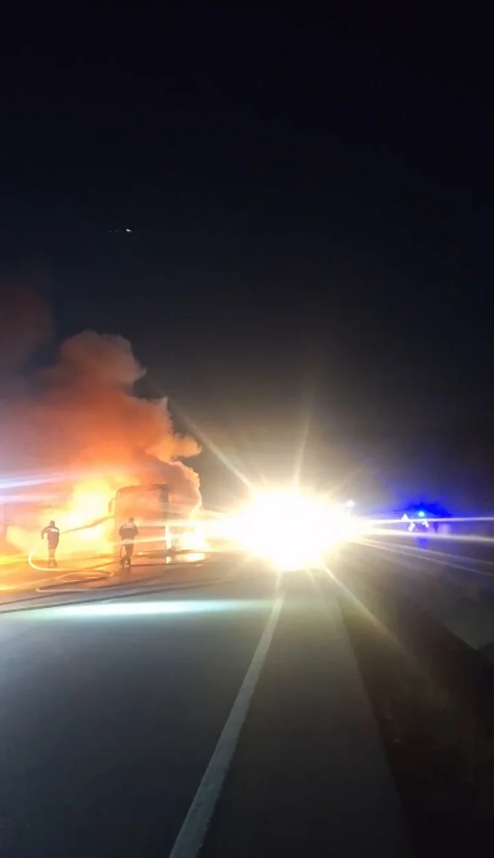 Durumu fark eden otobüs şoförü, yolcuları tahliye etti. Yangın büyürken, ihbarla olay yerine itfaiye, sağlık, polis, jandarma ve AFAD ekipleri sevk edildi. Yangın, itfaiye ekiplerinin müdahalesi sonrası söndürüldü. 30 yolcu, başka bir otobüsle yola devam etti.
