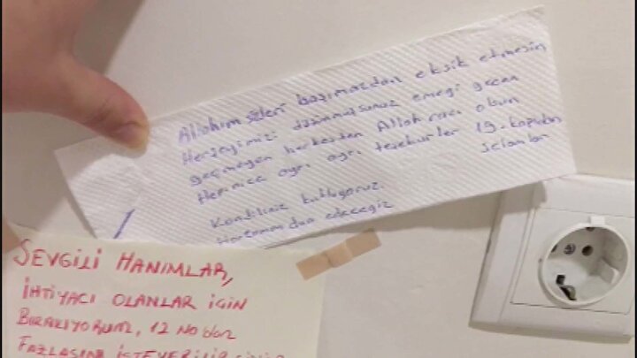 Yılmaz, "Burada tek eksiğimiz, hijyenik kadın pediydi. Bize verilen malzemelerin içine koymamışlar, ben de ihtiyacımdan fazla olanı koridoruma bıraktım. Karşı koridora da aynı şekilde. Bizim karşı koridora geçmemiz yasak ama bir polis beyden rica ettim, iki koridora da paylaştırdım fakat sonuç olarak biz burada çok fazla kişi yaşıyoruz ve birbirimizden haberimiz yok. Tek eksiğimiz ped, bu düşünülmemiş. Bunu paylaşırken bir not yazıştım. Sonra onun üzerine bir hanımefendi teşekkür etmiş not ile mesela. Demek ki buna bir ihtiyaç var, bu belirtilmesi gereken bir durum ki temin edilebilsin" ifadelerini kullandı.