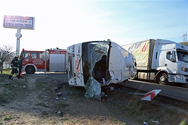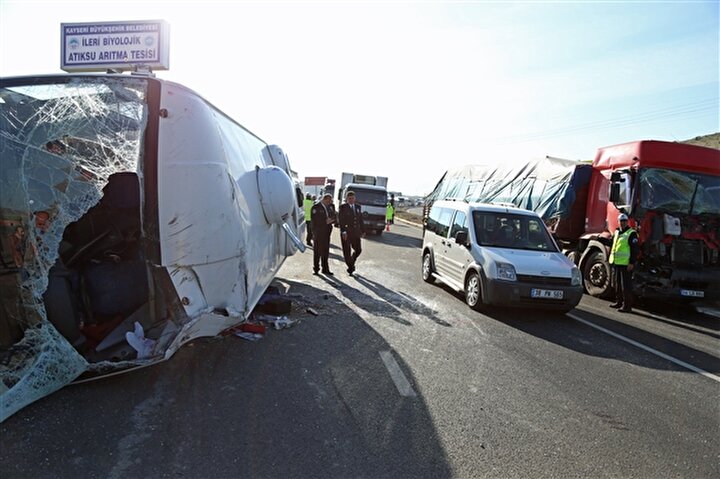 Kayseri'de bir tır, midibüs ve minibüsün karıştığı trafik kazasında 1'i ağır 27 kişi yaralandı.