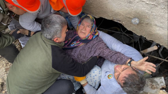 Hatay'da depremin 36'ncı saatinde, orman yangınlarına müdahale için kurulan Orman Kurtarma Timi (ORKUT) tarafından enkazdan çıkarılan 88 yaşındaki Ümmühan Kalkan, kendisini kurtaran ekiple bir araya geldi. Kalkan, yıkıntılar arasından çıkarıldıktan sonra hastanede hayatını kaybeden oğlu Yılmaz Kalkan ile enkaz altındaki konuşmalarını anlatırken gözyaşı döktü.