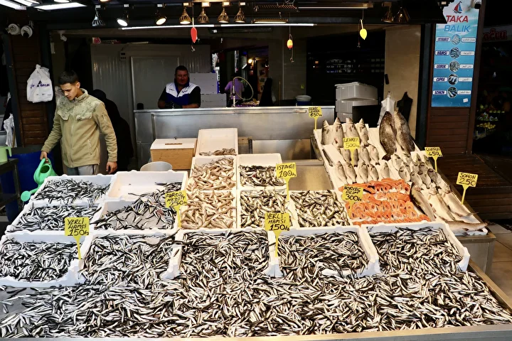 Trabzon'daki balıkçı tezgahlarını süsleyen hamsi, kilogramı 100 liradan satışa sunuluyor.