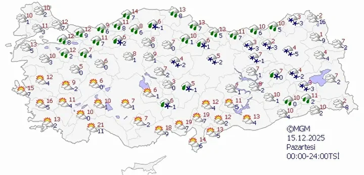 15 Aralık Pazartesi hava durumu tahmin haritası
