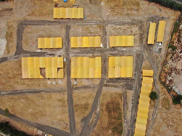 Çadırların büyük bir bölümünün tamamlandığı bazı çadırların brandaların kapatılmadığı görüldü.