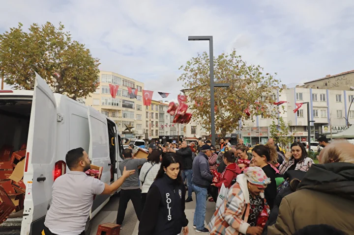 Bir market tarafından kek dağıtımı yapıldı, bu sırada izdiham yaşandı. Vatandaşlar, dağıtılan keklerden almak için birbiriyle yarıştı. Bazı çocuklar, ezilme tehlikesi geçirdi. İzdiham oluşunca keklerin dağıtıldığı araç, zabıta ve polis ekipleri tarafından tören alanından uzaklaştırıldı.