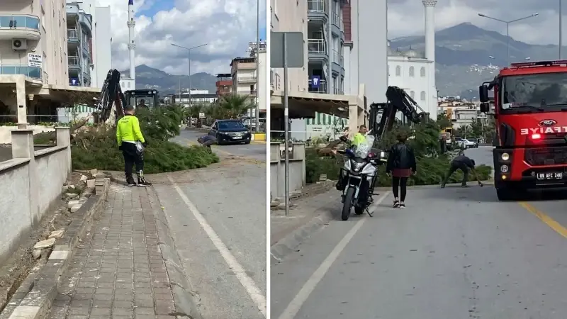 Vatandaşlar durumu 112 Acil Çağrı Merkezi’ne bildirdi. İhbar üzerine bölgeye polis ve itfaiye ekipleri sevk edildi. Ağacın devrilen dalları sebebiyle yol, trafiğe kapanırken, trafik ekipleri yolda güvenlik önlemi aldı.