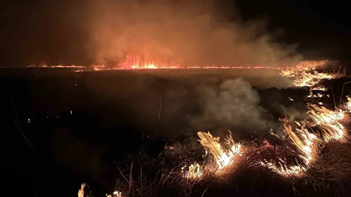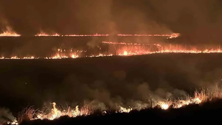 Hakkari’nin Yüksekova ilçesindeki kuş cenneti Nehil Sazlığı’nda çıkan yangın, rüzgarın da etkisiyle geniş bir alana yayılarak yerleşim alanlarını tehdit ediyor. Ekipler, bataklık araziye araçların girememesi nedeniyle yangına yaya olarak müdahale etmeyi sürdürüyor.