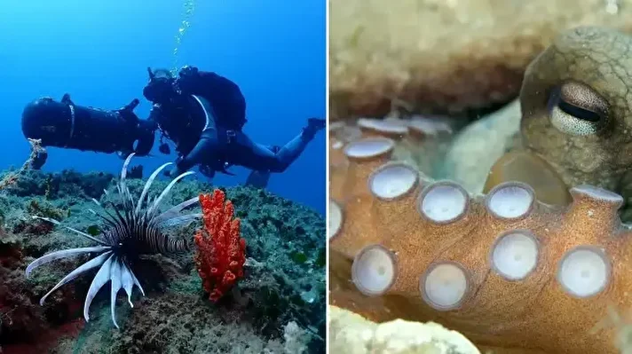 Aydın'ın su altı canlıları zenginliğiyle dikkat çeken Kuşadası ilçesi, dalış tutkunlarının gözdesi oldu. Yılın çoğu ayında dalış yapılan ilçede mavi derinliklerine inenler, Türkiye'de ender görülen deniz canlılarını görme ve görüntüleme fırsatı buluyor.