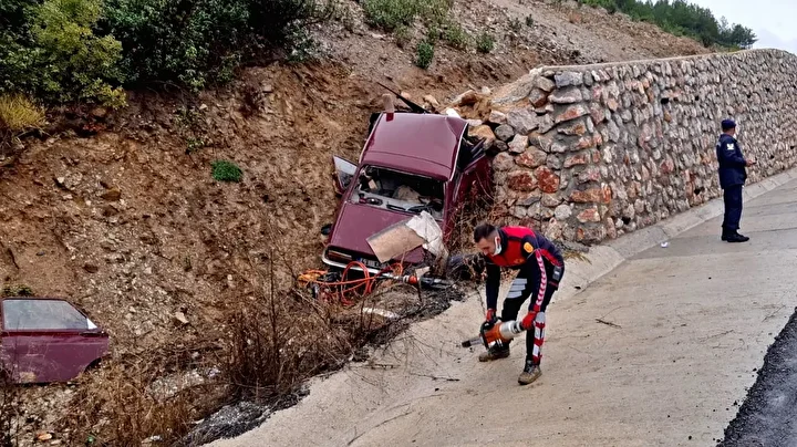 Kütahya'nın Emet ilçesinde, istinat duvarına çarpan otomobilin sürücüsü ile eşi hayatını kaybetti.