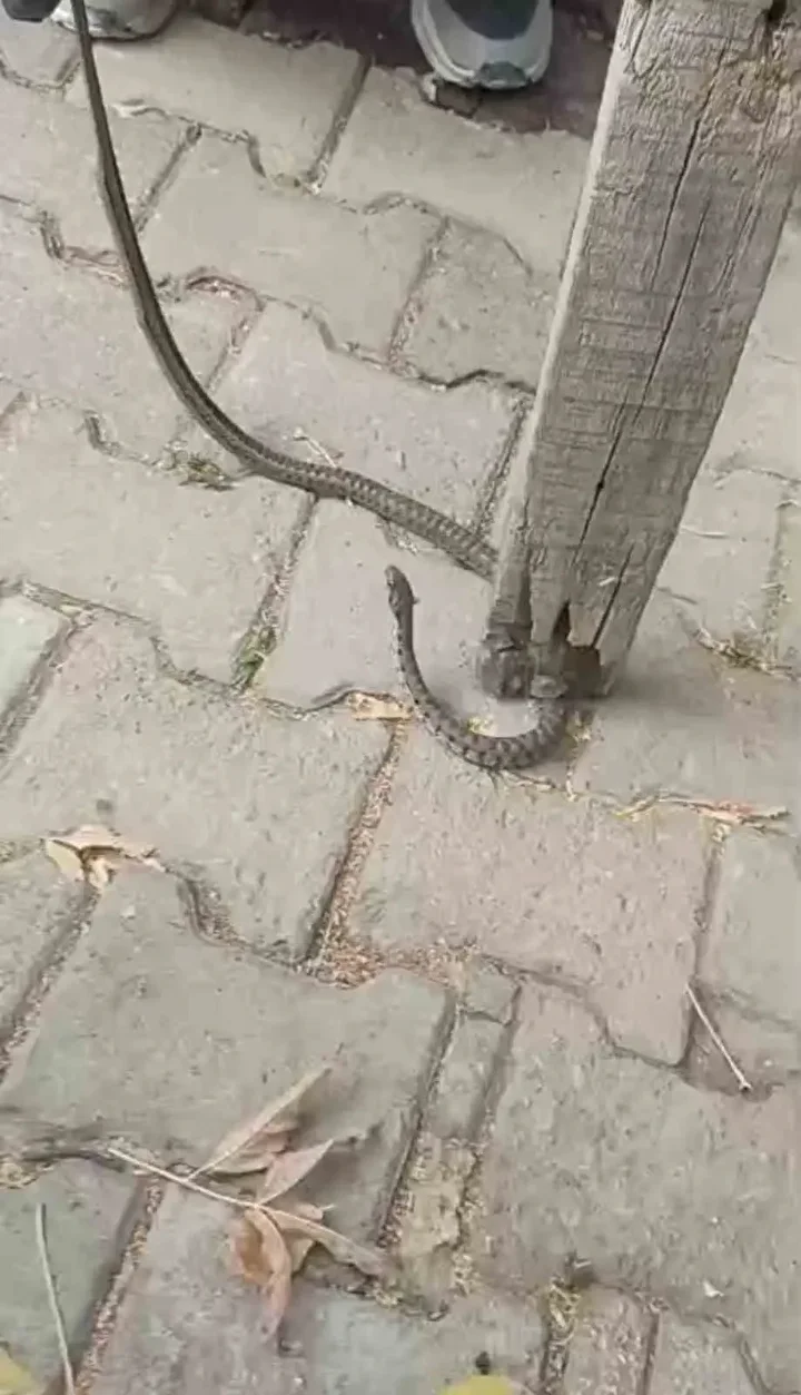 Daha çok çocukların karşısına çıkan ve mahallede paniğe yol açan yılan nedeniyle sokak sakinleri nöbet tutmaya başladı.
