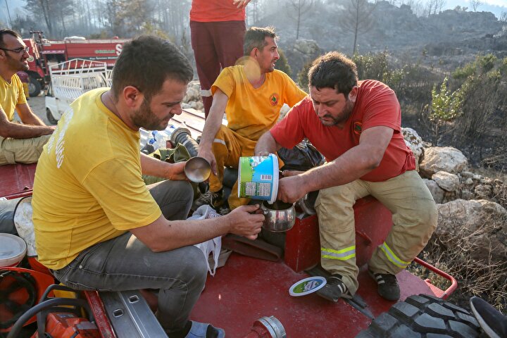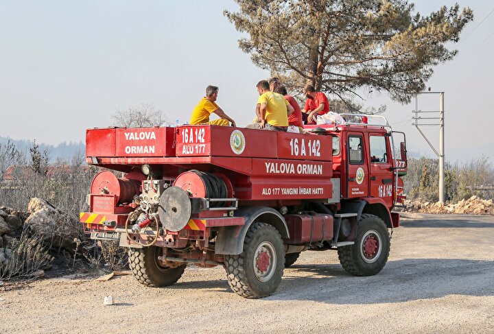 Manavgat'ta 3'üncü günde devam eden yangına müdahale için Türkiye'nin birçok ilinden gelen ekipler, yangının başladığı günden bu yana canlarını hiçe sayarak alevleri söndürmeye çalışıyor. Ekipler zaman zaman alevlerin arasında kalsalar da gece gündüz demeden çalışmalarını sürdürüyor. Yalova Orman Bölge Müdürlüğü'nden de 5 ekip ve arazöz, 700 kilometre uzaklıktaki Manavgat'a yaklaşık 10 saatlik yolculuk sonrasında ulaştı. Geldikleri günden bu yana alevlerle mücadele eden Bilal Avcı, Mustafa Kaynar, Ahmet Demirtaş, Hüseyin Arslan ve Serdar Tuhal'dan oluşan ekip, Yaylaalan Mahallesi'ndeki yangının yerleşim yerlerine ulaşmaması için sabah saatlerine kadar mücadele etti.