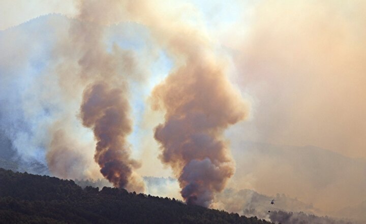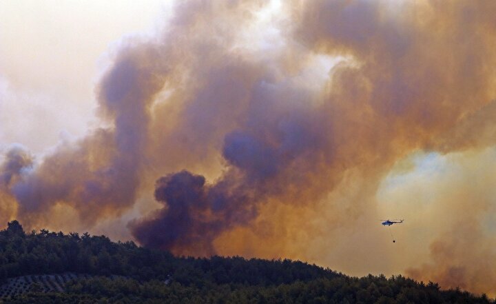 Antalya'nın Manavgat ilçesinde çarşamba günü öğle saatlerinde 4 farklı noktada başlayan yangına müdahale sürüyor. İlçede 6 farklı noktada gece boyunca devam eden söndürme çalışmaları, günün ışıklarıyla birlikte hızlandı. Havadan ve karadan müdahalelerin yoğun bir şekilde devam ettiği bölgede, alevlerden dolayı vücudunda yanık oluşan bir Orman Genel Müdürlüğü (OGM) personeli, ilk yardım çantasıyla kendisini tedavi edip göreve devam etti. Bölgede bulunan 3 bakan, çalışmaları koordine ediyor.