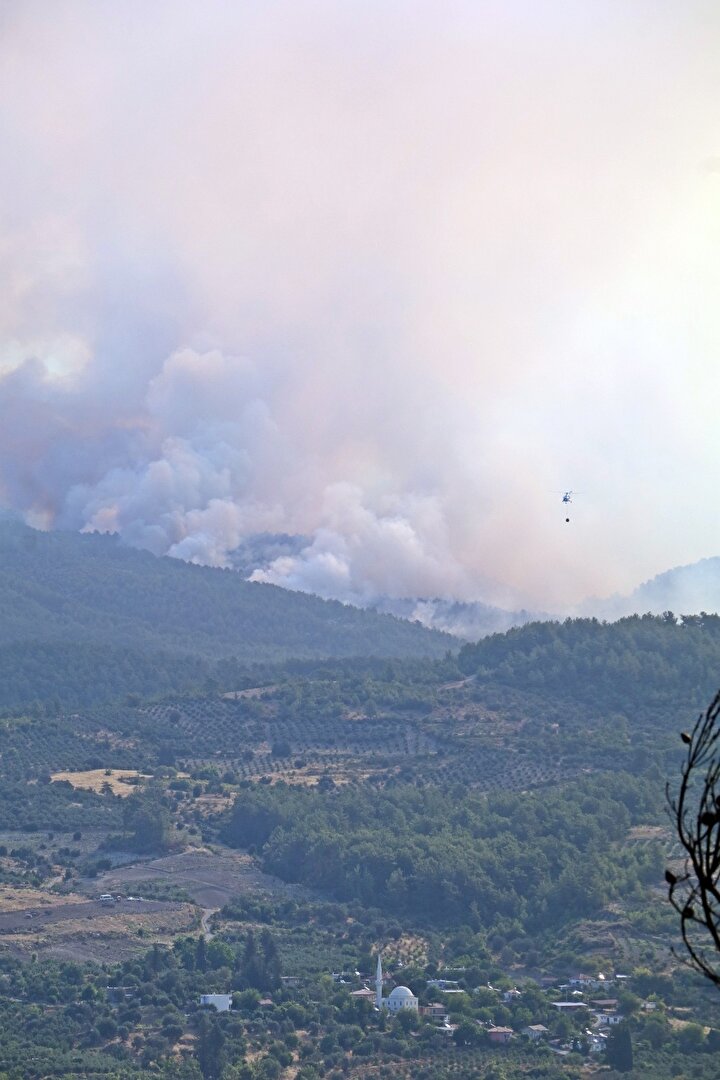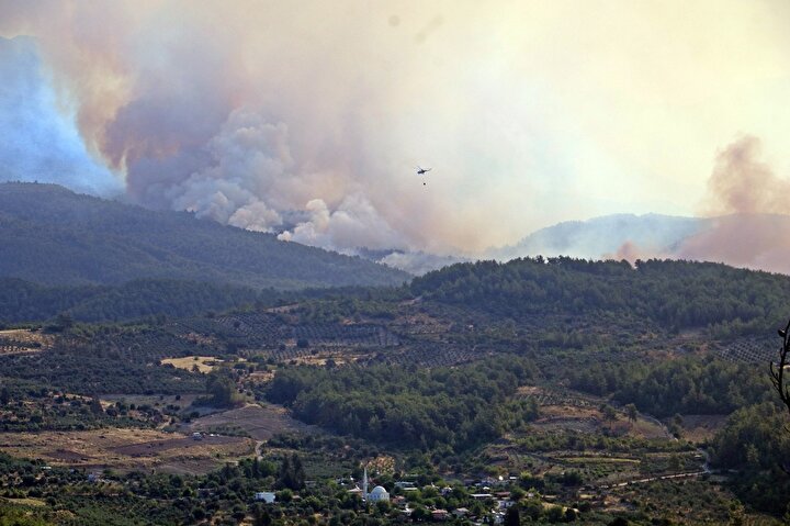 Bölgede çok sayıda zeytinlik ve bahçenin yanı sıra ormanlık alanda etkili olan yangına, havadan ve karadan müdahale edildi.