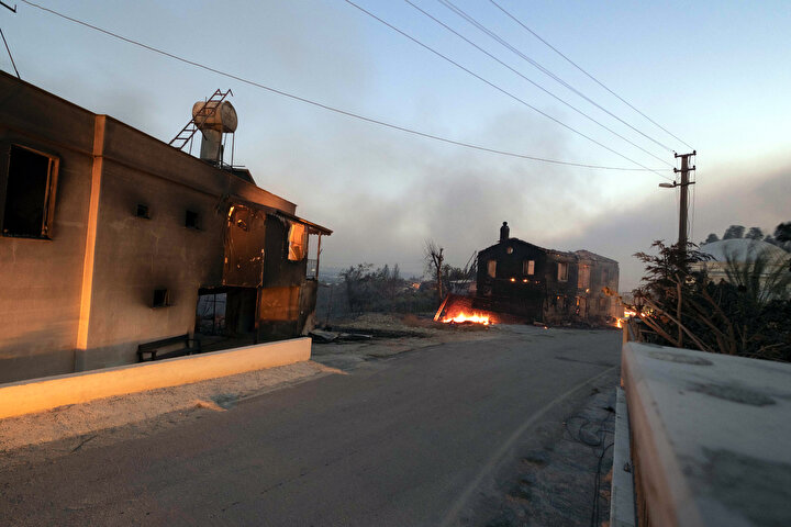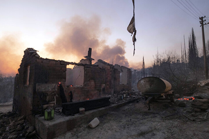 Adı öğrenilemeyen kadın ve bir akrabası hayvanlarını bile kurtaramadıklarını, bir ağaçta bağlı durumda olan köpek ve inekle ahırda bulunan keçilerinin de yandığını gazetecilere gösterdi.