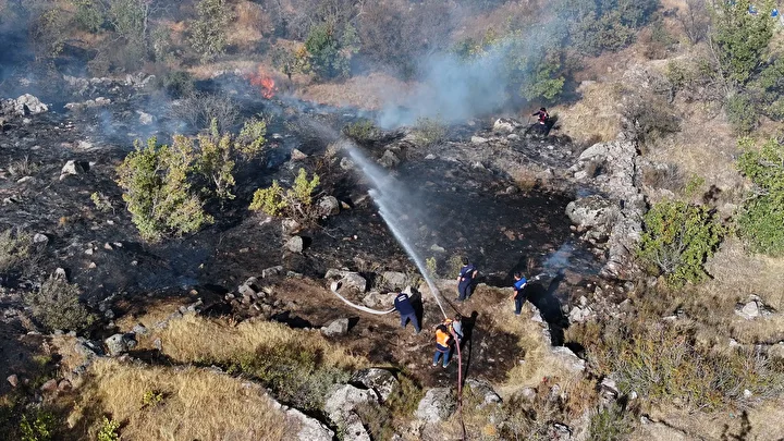 Ateşin rüzgarın etkisiyle çalılık alana sıçraması üzerine bölgeye polis ve itfaiye ekipleri sevk edildi.