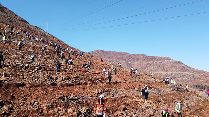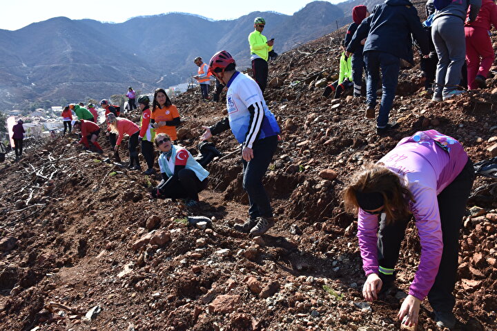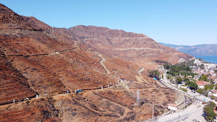 Muğla'nın Marmaris ilçesinde geçen yıl 29 Temmuz'da çıkan ve 9 gün sonra kontrol altına alınabilen orman yangında zarar gören alanların yeniden yeşerebilmesi için yoğun bir fidan dikim çalışması yürütülüyor. Kasımda orman şehitleri hatıra ormanına 50 bin fidan dikildi. Sonrasında toprak hazırlığı yapılan teraslarda dikilenler ve orman gönüllüsü doğaseverlerin katkılarıyla, şu ana kadar Marmaris'te yanan alanlarda yaklaşık 300 bin fidan toprakla buluşturuldu.