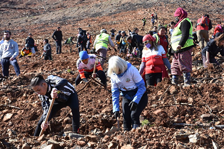Kamu kurumları, sivil toplum kuruluşları, siyasi partiler ile gönüllüler, çocuklar ve bazen de ev hayvanlarını yanlarına alarak ağaçlandırma seferberliğine katkı veriyor.