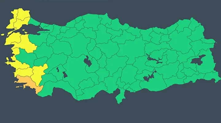 Sarı kodlu uyarı yapılan iller: Aydın Balıkesir, Çanakkale, Denizli, Edirne, İzmir, Kırklareli, Tekirdağ.