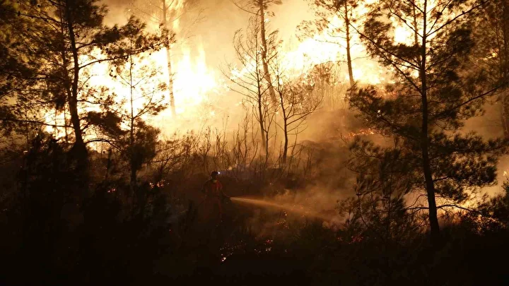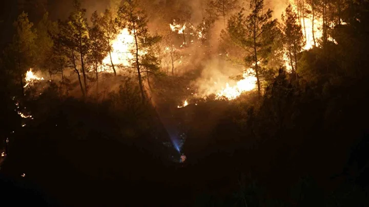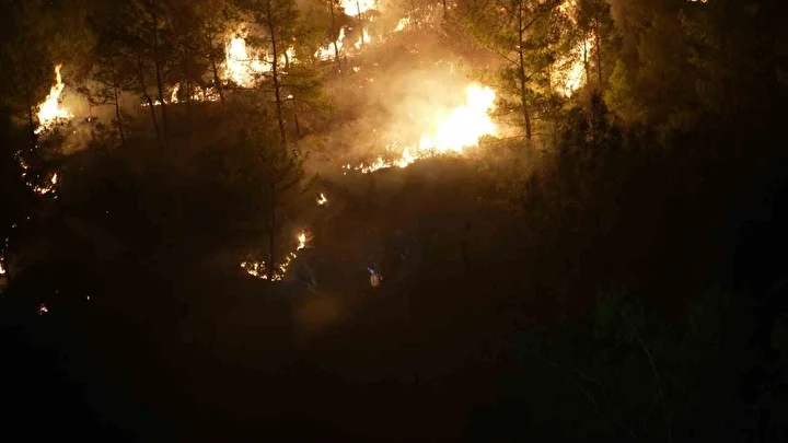 Muğla’nın Köyceğiz ve Milas ilçesinde çıkan orman yangınları ile mücadele gece de devam ederken, yangın söndürme ekiplerinin alevlerle savaşı sürüyor. Gecenin karanlığına aldırış etmeden alevlere göğüs geren ateş savaşçıları cansiperane şekilde yangını kontrol altına almak için çalışıyor.
