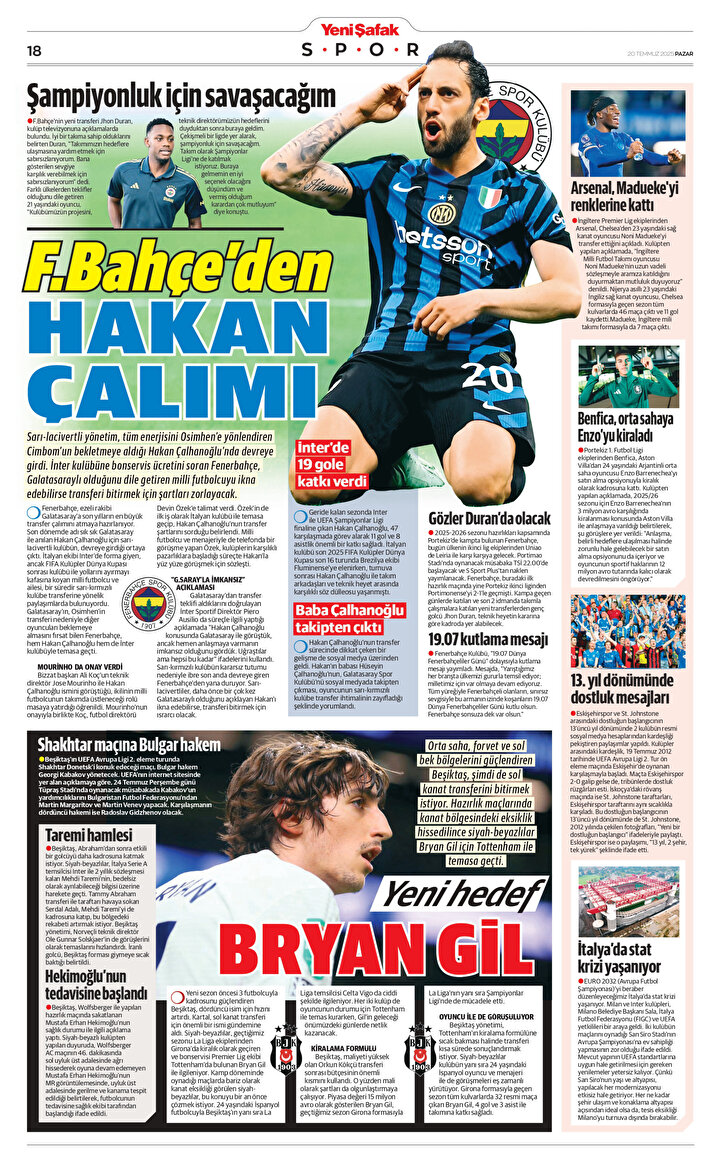 Sarı-lacivertli yönetim, tüm enerjisini Osimhen’e yönlendiren Cimbom’un bekletmeye aldığı Hakan Çalhanoğlu’nda devreye girdi. İnter kulübüne bonservis ücretini soran Fenerbahçe, Galatasaraylı olduğunu dile getiren milli futbolcuyu ikna edebilirse transferi bitirmek için şartları zorlayacak.