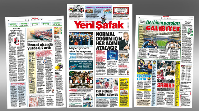 Yeni Şafak Gazetesi'nin 3 Mayıs 2025 tarihli birinci sayfasında yer alan manşet ve haberler...