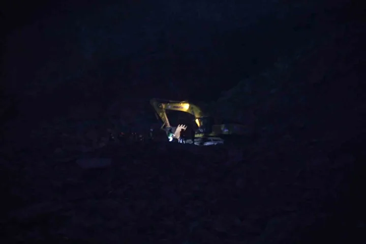 İlgili kurumların personelince göçük alanında inceleme yapıldı.