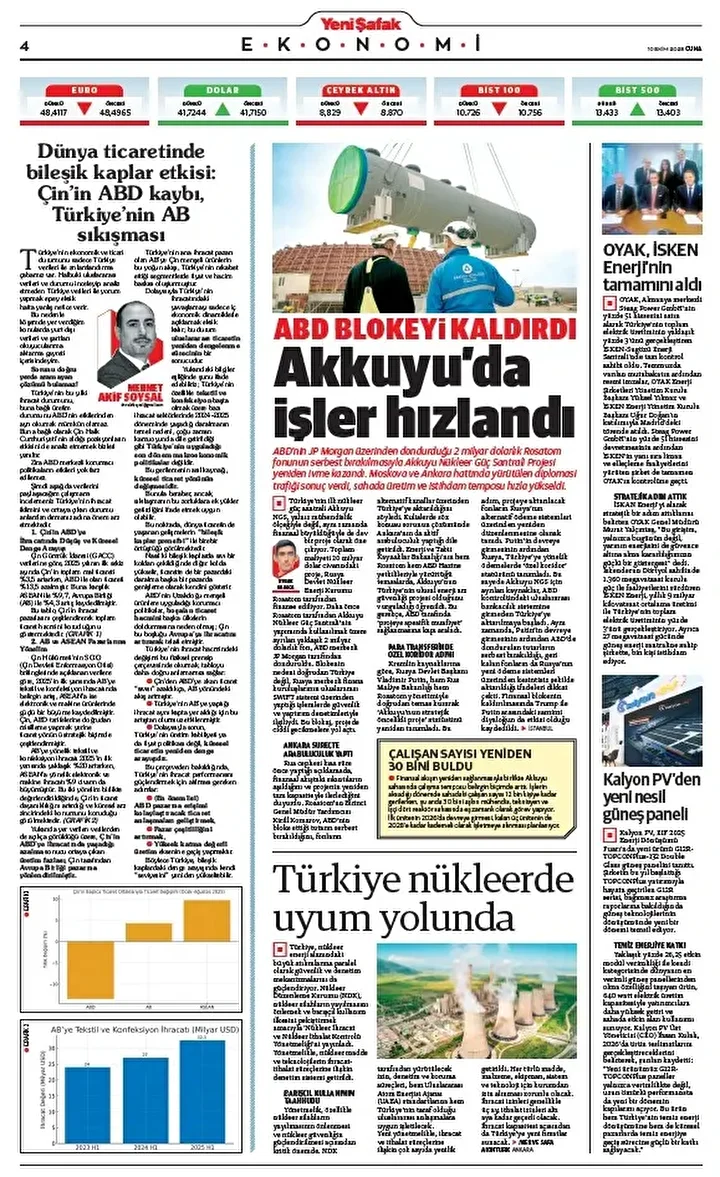 ABD’nin JP Morgan üzerinden dondurduğu 2 milyar dolarlık Rosatom fonunun serbest bırakılmasıyla Akkuyu Nükleer Güç Santrali Projesi yeniden ivme kazandı. Moskova ve Ankara hattında yürütülen diplomasi trafiği sonuç verdi, sahada üretim ve istihdam temposu hızla yükseldi.