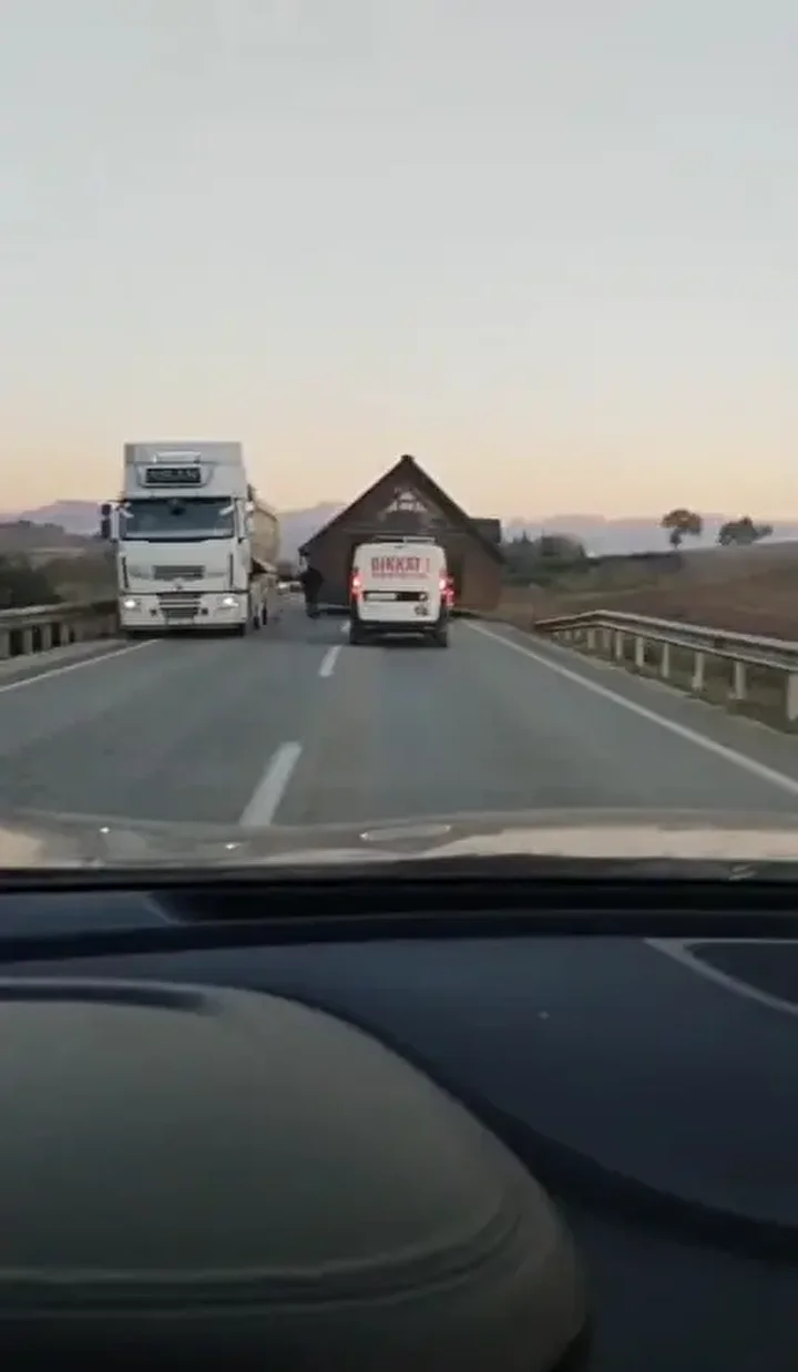 Adana'nın Karaisalı ilçesinde genişliği nedeniyle yolu kaplayan prefabrik ev taşıyan TIR, trafikte aksamalara yol açtı. Eskort araç eşliğinde ilerleyen taşıma konvoyu, dar yolda sürücülerin uzun süre beklemesine neden oldu.